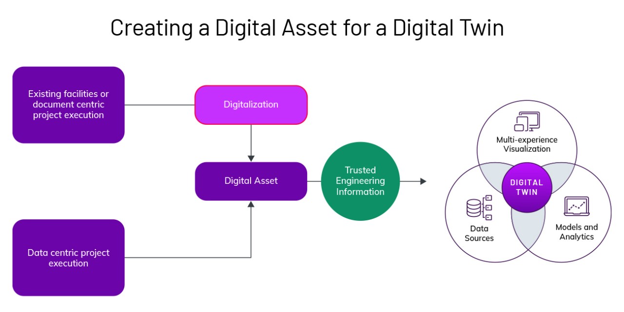 任何可靠数字孪生的核心是高质量的数据。新建工厂项目可以从一开始就大量收集数据,而现有工厂改造项目则需要通过为现有资产创建数字图像来扭转劣势。所有一维和二维文档和图表需要进行数字化,才能创建数据中心,然后标记和链接到对资产的三维激光扫描,建立一个充分结合的资产数字孪生,就像现在一样。